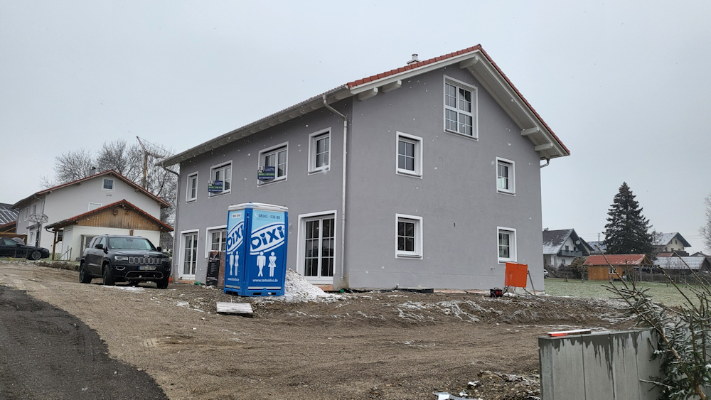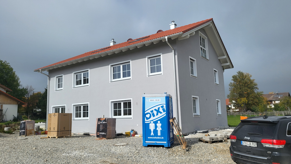 In Reichling werden derzeit von der Konstruktiv Bau GmbH zwei Doppelhaushälften in massiver Ziegelbauweise als KfW-55-Effizienzhäuser geplant.